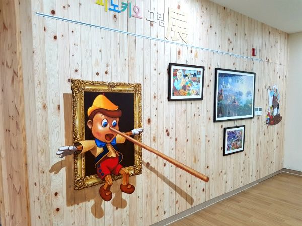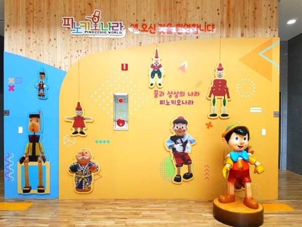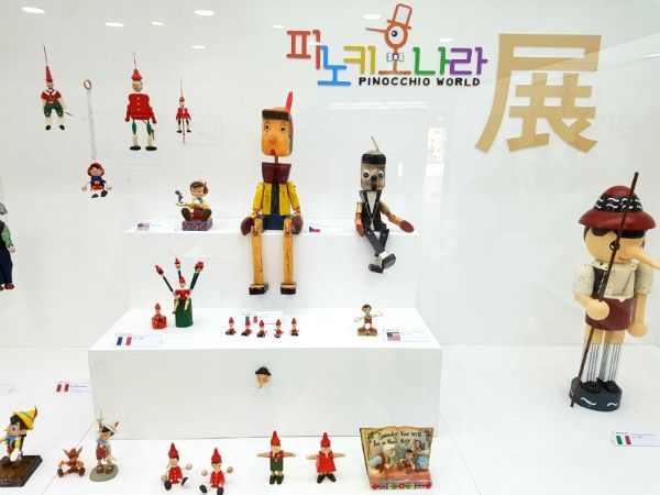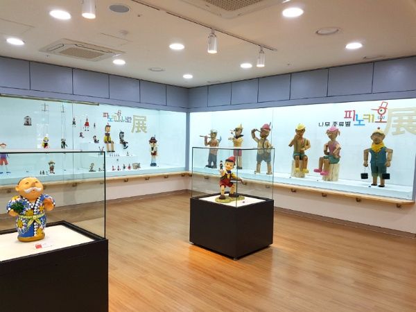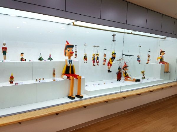 국내 및 해외 피노키오 목각인형이 전시되어 있어요.