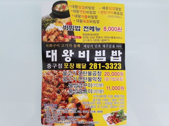 '대왕비빔밥'의 전단지 메뉴 올려드리니